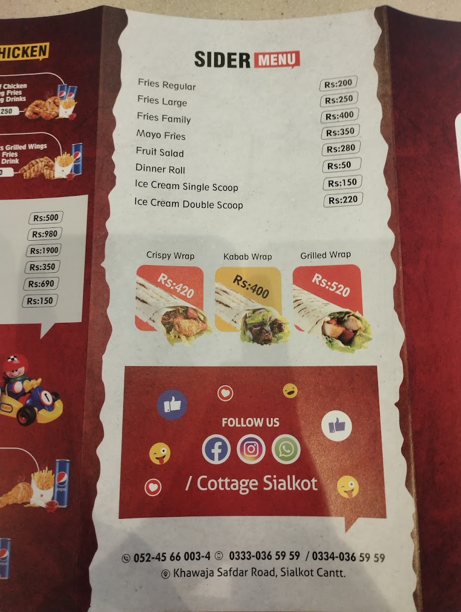 Cottage Sialkot Menu